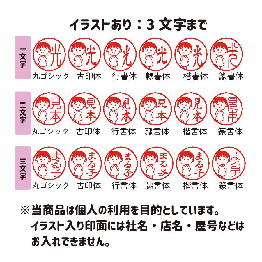 ちびまる子ちゃん 印鑑セット 15mm 柘植 消しゴムはんこ イラスト入り 朱肉・印袋付き