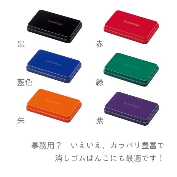乾燥時間「3秒」の速乾性により、きれいな印影が魅力的なスタンプ台!事務作業にはもちろん、消しゴムはんこでも大活躍します。盤面サイズ: 90×56mm本体サイズ: 104×72.4×15.9mm黒・赤・藍色・緑・朱・紫・空色・牡丹・茶色・黄色の全10色です※空色・牡丹・茶色・黄色のボディーカラーはグレーです