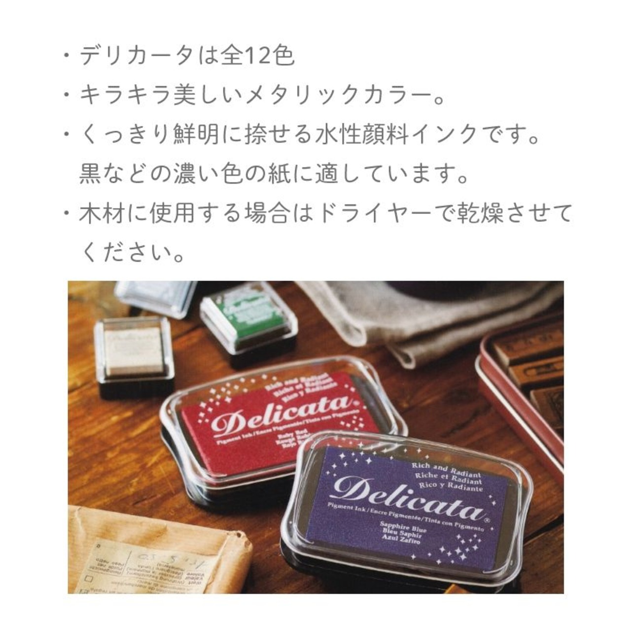 キラキラ美しいメタリックカラー。くっきり鮮明な発色の水性顔料インクです。全12色。本体サイズ:直径27mm×H66mm容量15ml・乾燥するまで普通紙で10〜15分かかります。 木材に使用する場合はドライヤーで乾燥させてください。・インクが少なくなったら、完全に乾く前に早めにインカーから補充してください。・乾燥を防ぐために、使用後すぐにフタをしてください。・エンボスには不向きです。