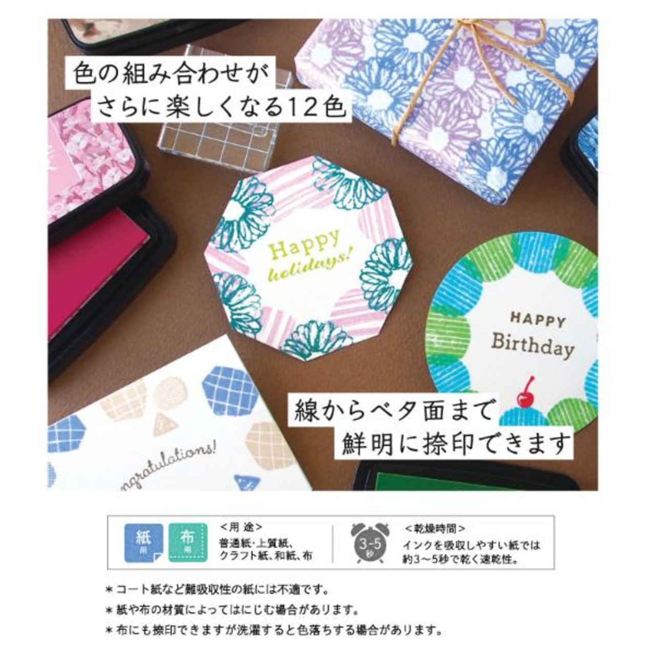 ・細かい図案のスタンプもくっきり鮮明に 捺すことができます。・乾燥後は水をはじき、にじみません。全36色本体サイズ:直径24×H66mm容量:15ml・コート紙などの難吸収性の紙には不向きです。・布にも捺印できますが、洗濯すると色落ちする 場合があります。・エンボスには不向きです。