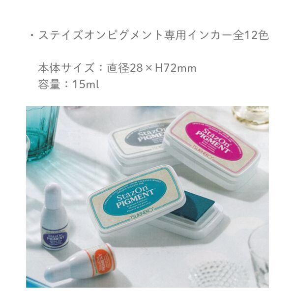ステイズオンピグメント用インカーです。全12色展開サイズ:直径28×H72mm容量:15ml